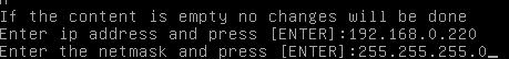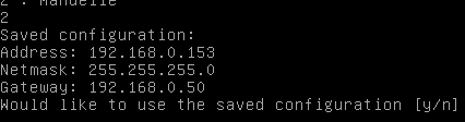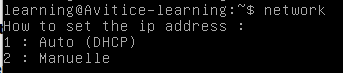 Tapez '2' pour pouvoir accéder aux paramétrage d'une adresse ip fixe :